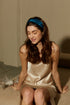 Fitted with elasticated silk band at the back , makes it universal for any size and comfortably secured .Smooth texture of pure silk is gentle on hair and skin. Doesn’t slip!